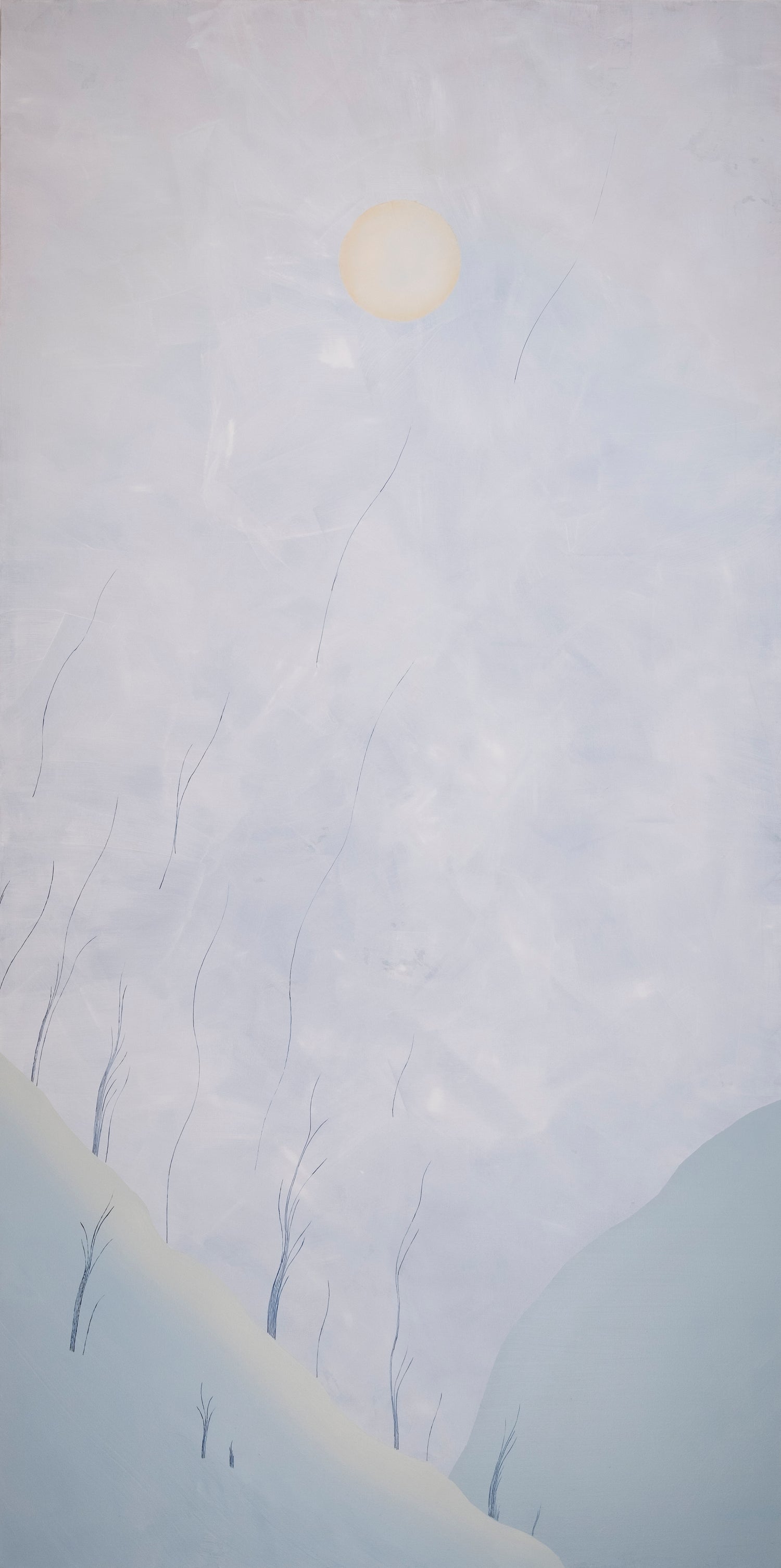 Since then, I have nurtured visions from my dreams – both those that emerge in sleep and those that arise involuntarily, belonging more to the inner world than the outer. Warm planets, hair, grids of dots – I collect them like words in my inner language of symbols, which I carry with me into the studio. Until now, I have worked in large formats, allowing me to construct expansive compositions of inner landscapes. This time, I extract individual elements from the whole – each given its own space, becoming an autonomous being. I wish to observe them closely, as if under a microscope, before they merge once more into a larger whole.