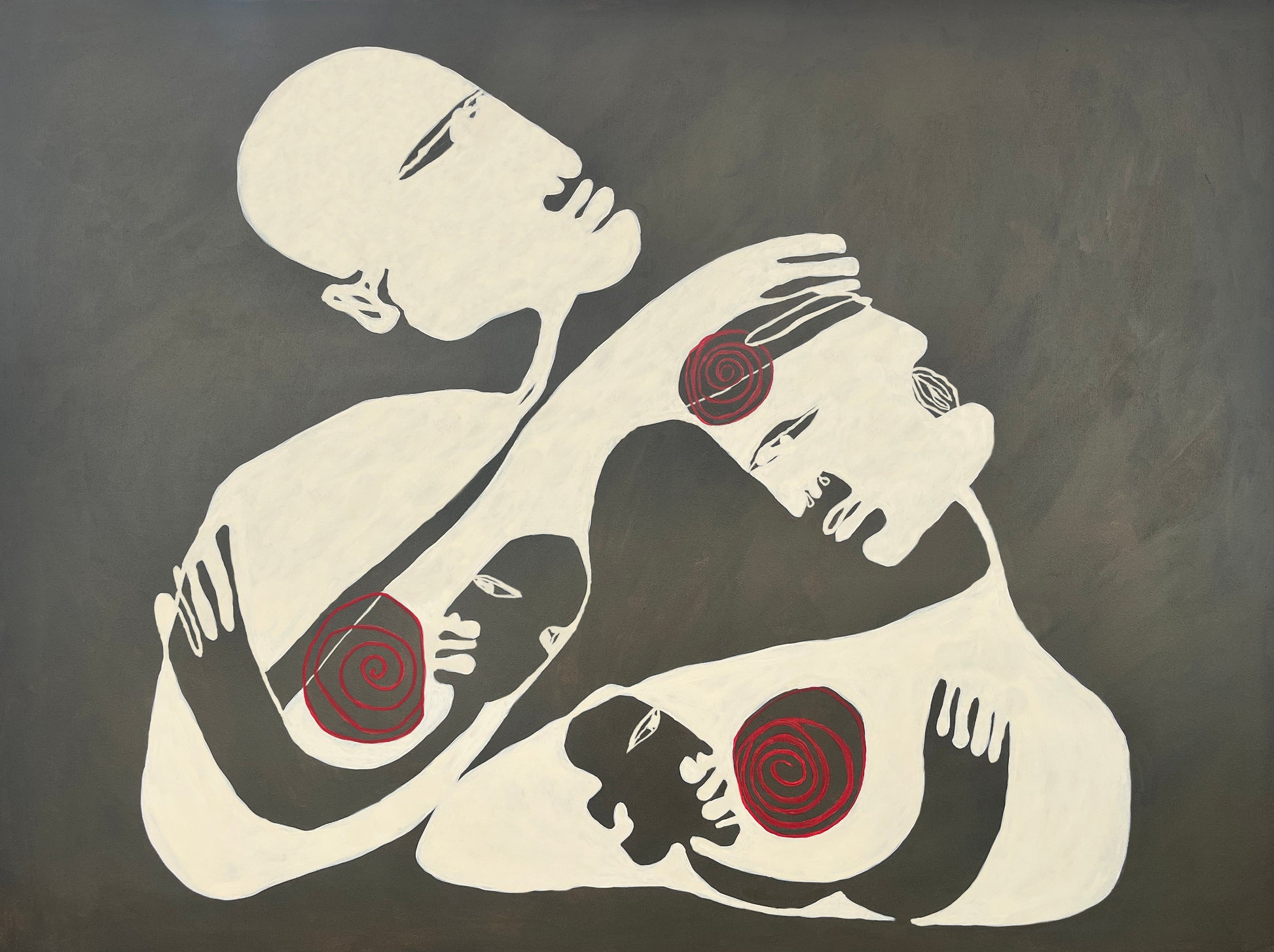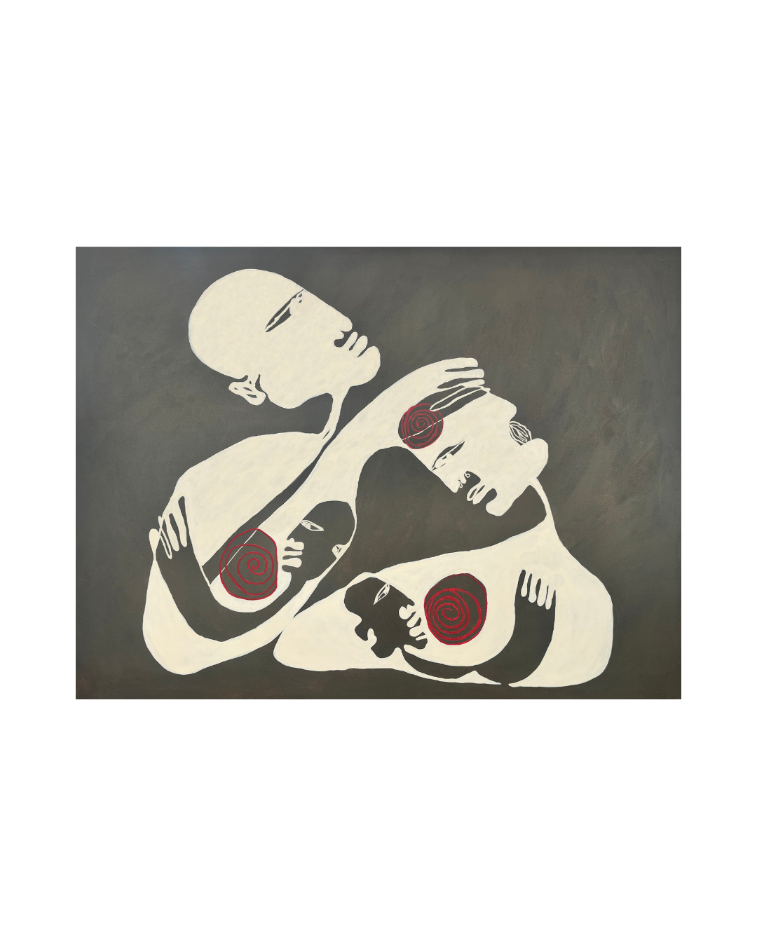Because her paintings pulse with quiet intensity—minimalist yet bold, each work deconstructs the human figure to reveal the raw poetry of emotion.